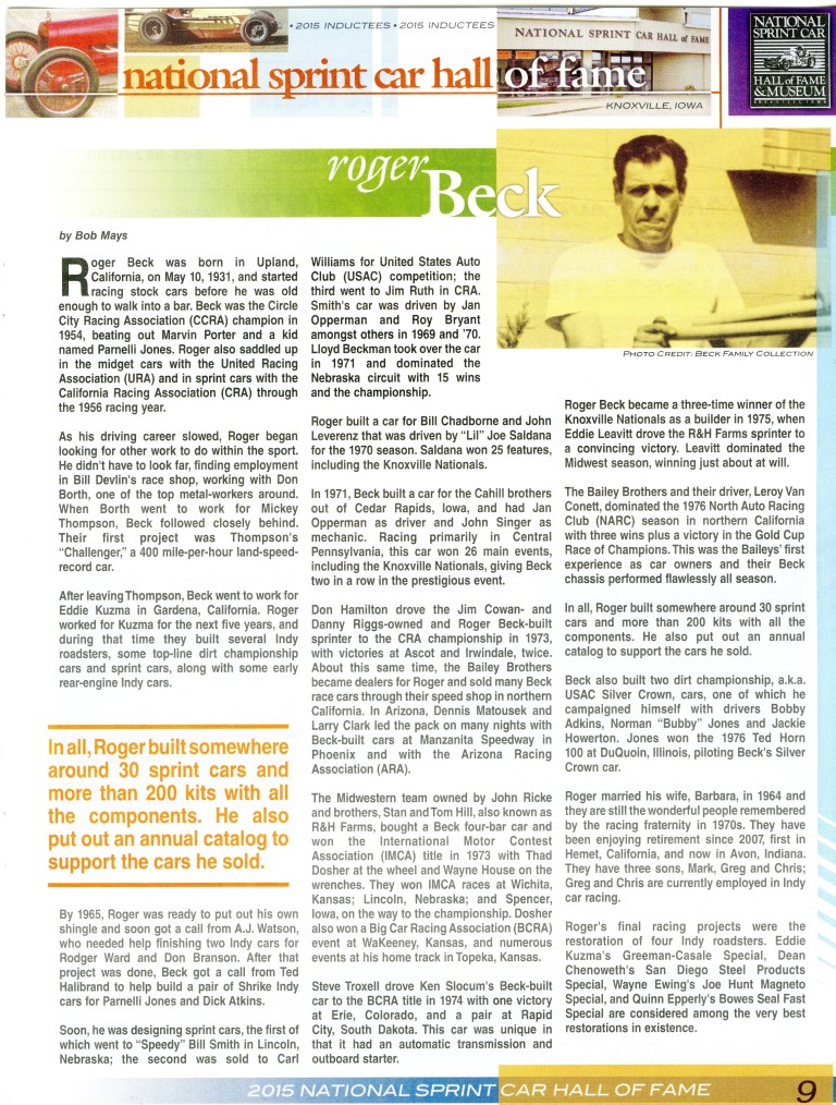 2023 - Thirty-Third National Sprint Car Hall of Fame Inductions
